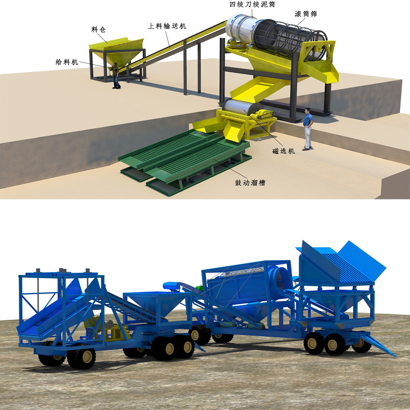 沙金在砂、石、泥之中,淘金步骤是:洗泥→筛分→精选→提纯这几道程序,要准备好的设备主要有:震动筛、圆筒筛、溜金槽、鼓动溜槽、粘金毯、跳汰机、摇床、离心选矿机...: